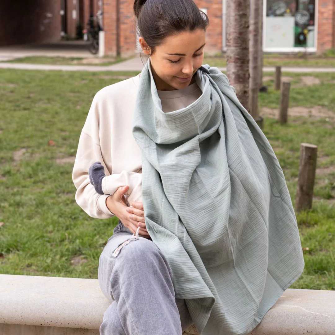 The Mom’n Play nursing cape allows you to breastfeed your baby anywhere, in complete privacy. Made of organic cotton, it can easily be attached around your neck thanks to its silicone non-slip ring. Multifunctional, Its ideal size allows to always have something at hand to take care of baby, to wipe his face, to protect him from the wind or the sun,… Moreover, its silicone ring has been designed to relieve teething for the very young. It can be taken everywhere to deal with any unexpected event.